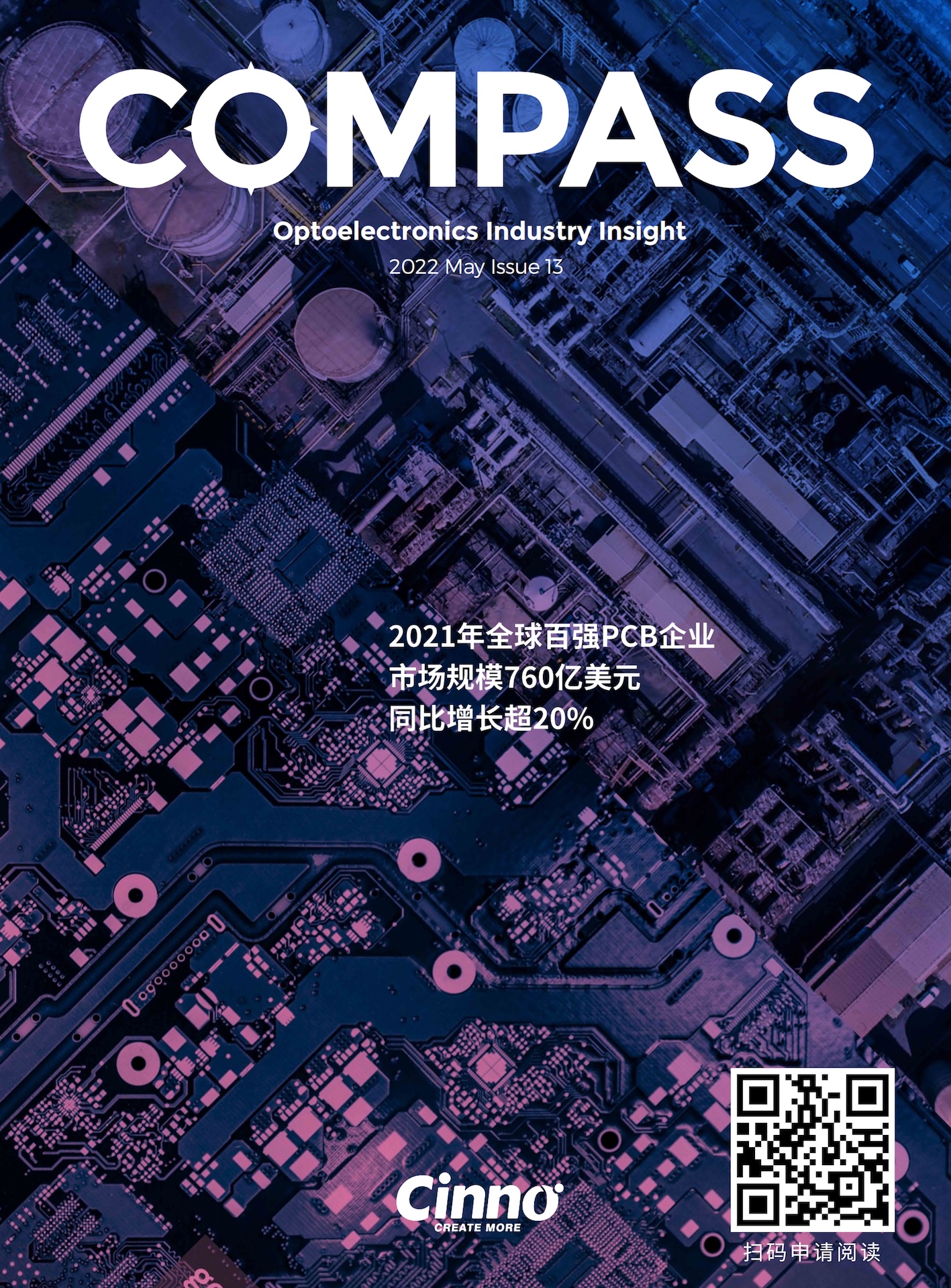 2022年5月刊《COMPASS》2021年全球百强PCB企业市场规模760亿美元,同比增长超20%