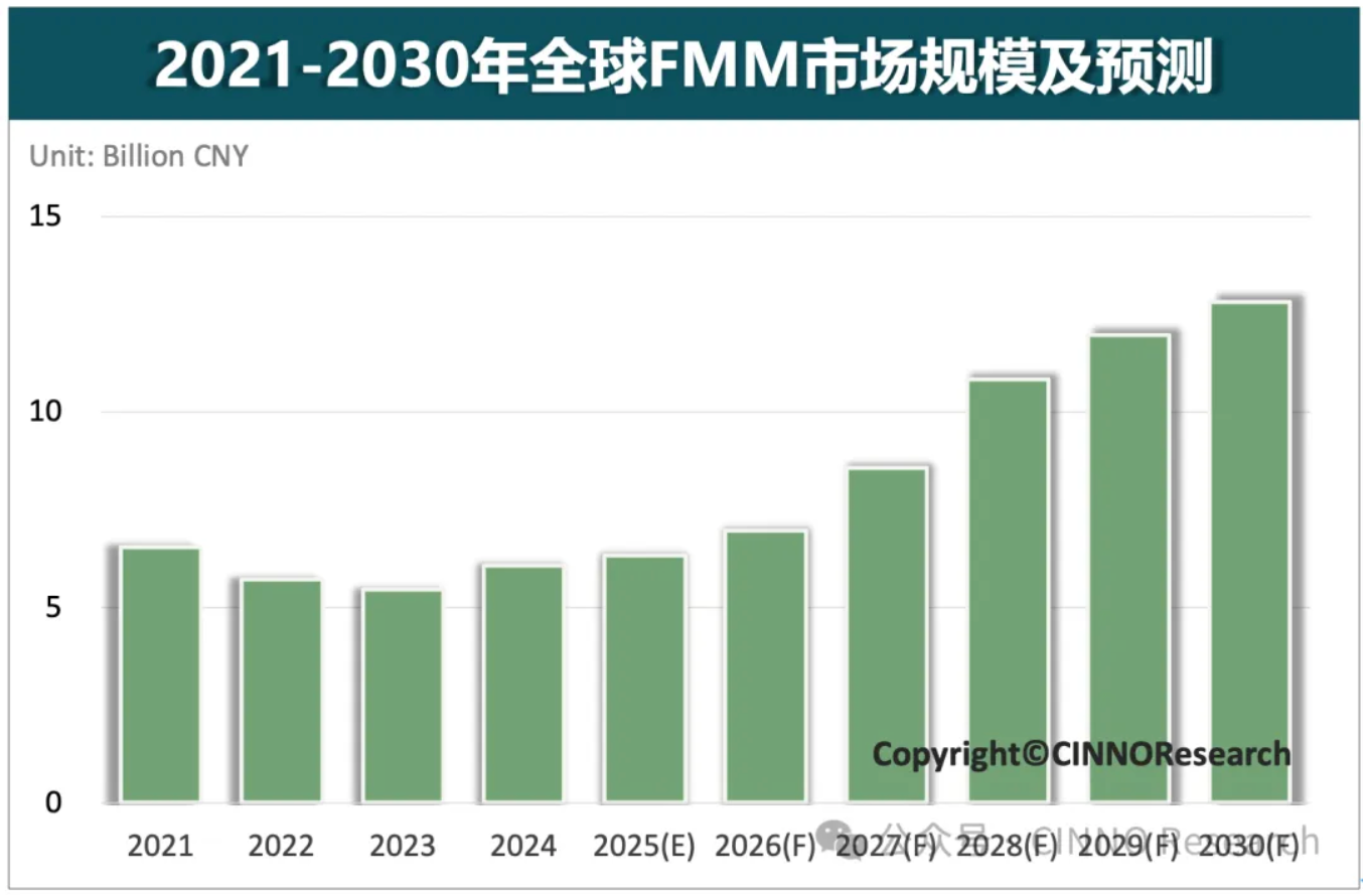 图示: 2021-2030年全球FMM市场规模及预测,来源: CINNO Research