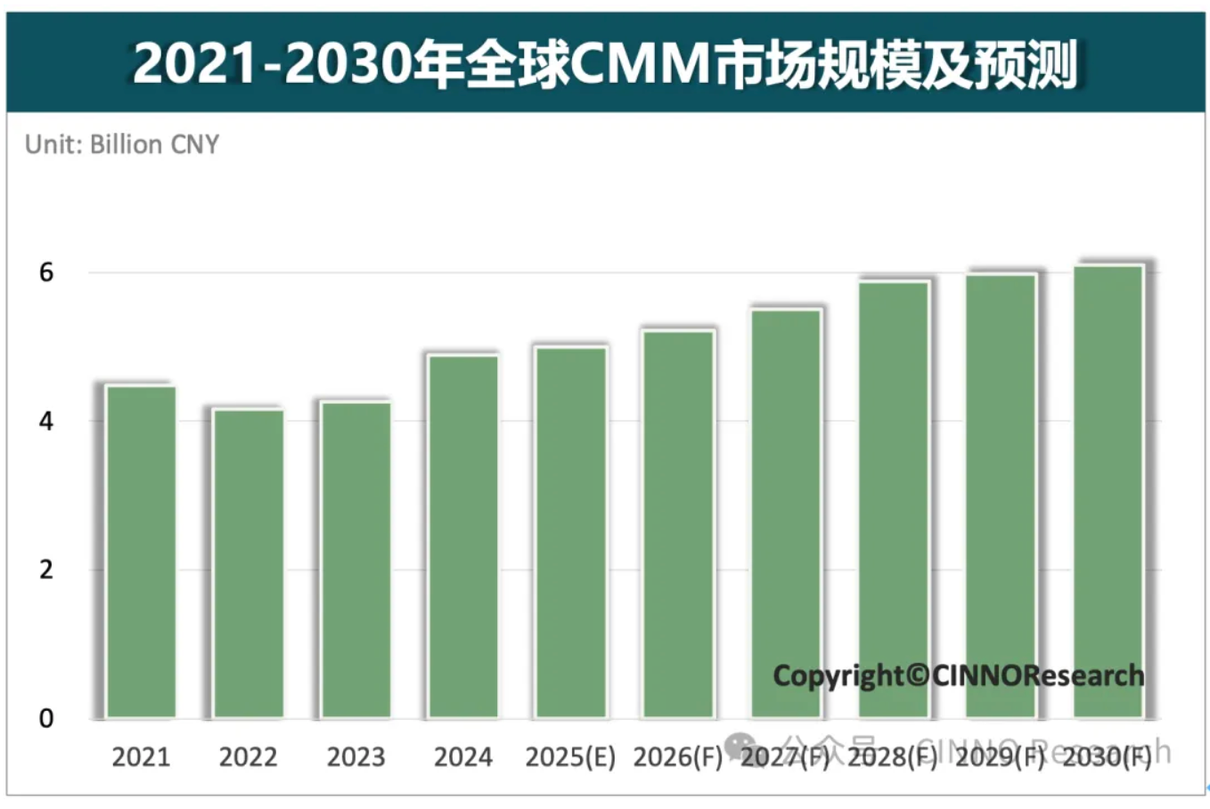 图示: 2021-2030年全球CMM市场规模及预测,来源: CINNO Research