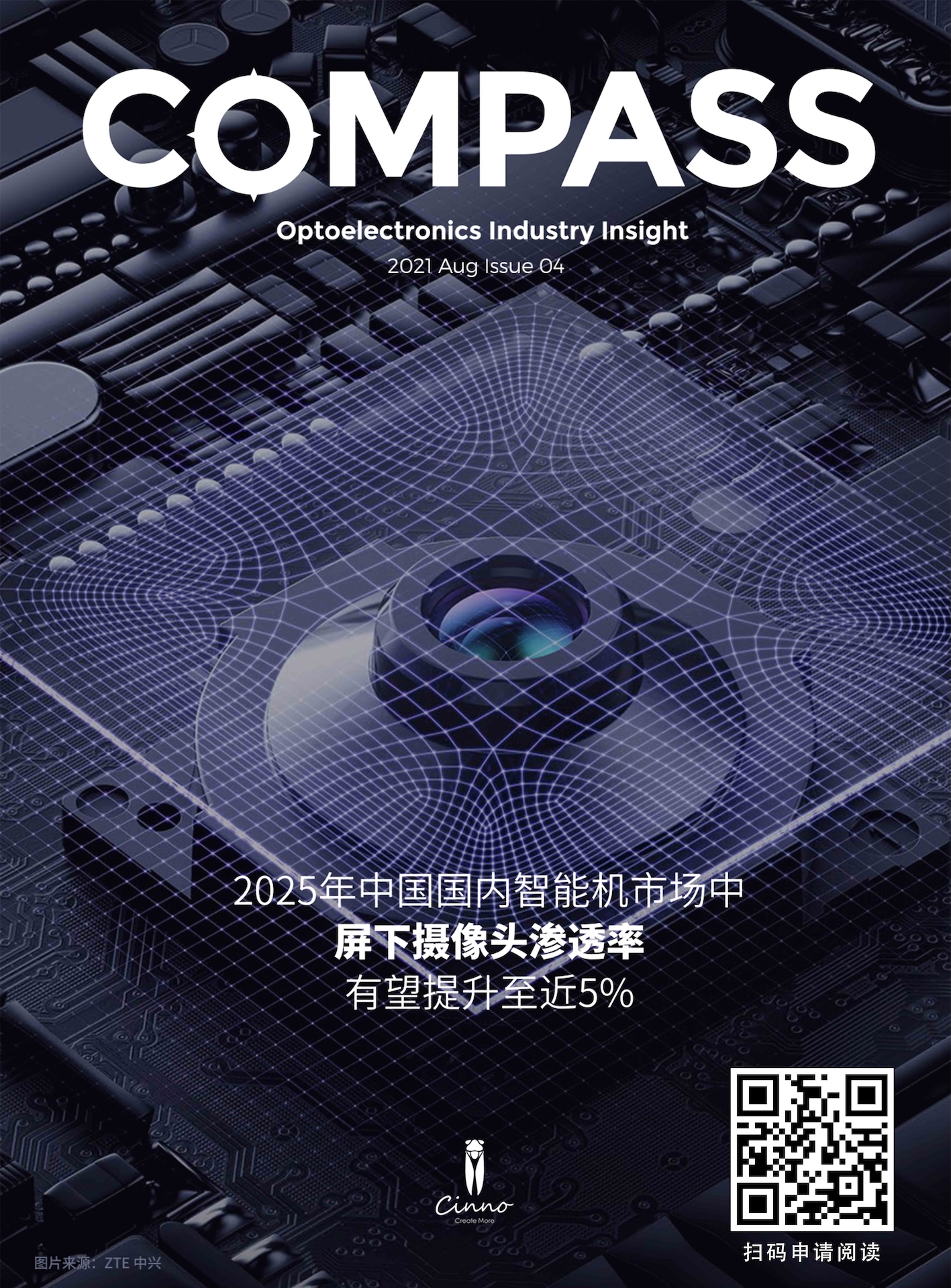 2021年8月刊《COMPASS》2025年中国国内智能机市场中屏下摄像头渗透率有望提升至近5%
