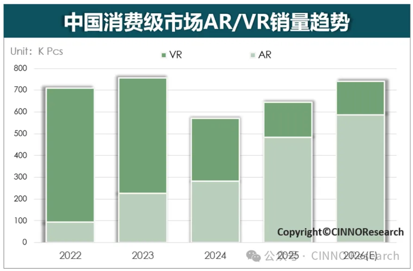 图示:2022-2026年中国消费级市场AR/VR销售趋势,来源:CINNO Research