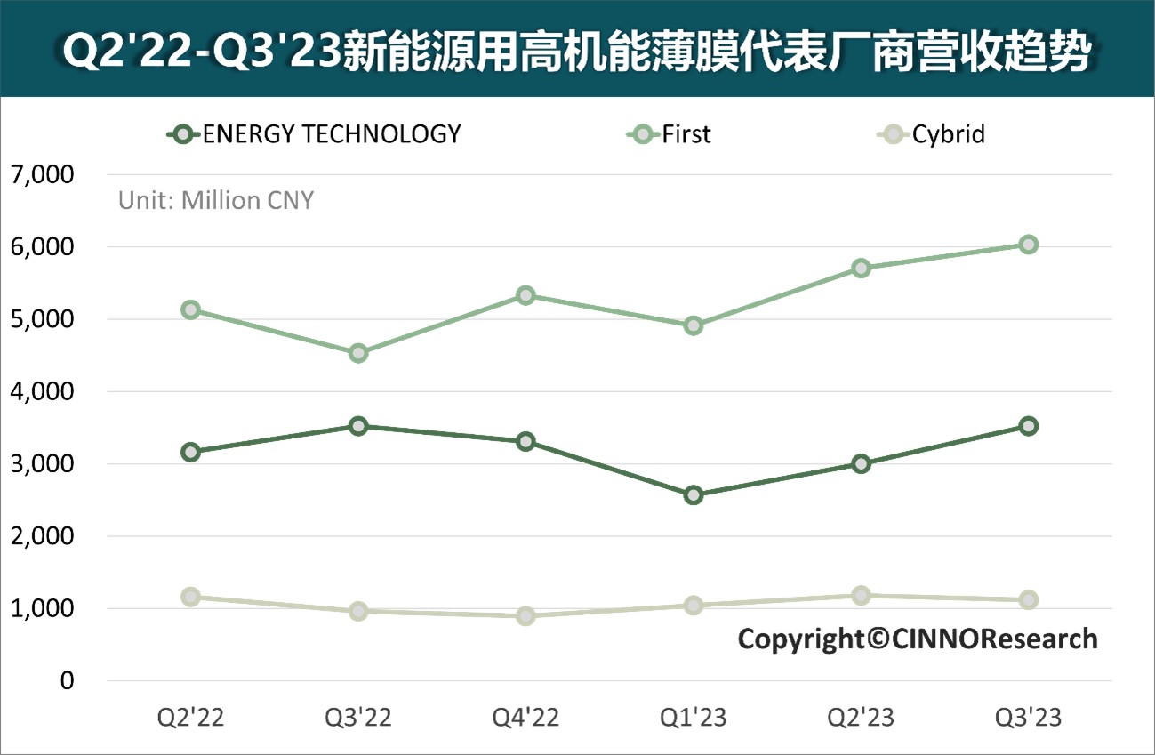 图示:Q3’23新能源用高机能薄膜代表厂商营收趋势 来源:公开资料, CINNO Research整理
